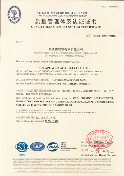 2018年質量證書